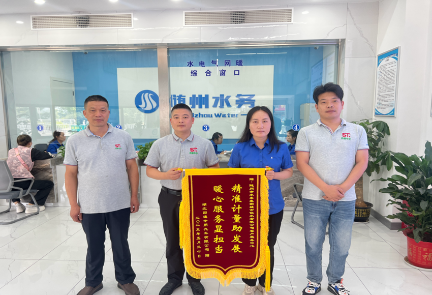 “精準計量助發(fā)展,暖心服務(wù)顯擔當”,6月5日,一面鮮紅的錦旗被鄭重地送到隨州市水務(wù)集團城市供水有限公司客戶服務(wù)中心。湖北四通專用汽車有限公司總經(jīng)理帶隊專程致謝,對公司免費提供的水表檢定服務(wù)給予高度贊揚,表達誠摯謝意。這面錦旗不僅是企業(yè)對隨州水務(wù)優(yōu)質(zhì)服務(wù)的認可,更是隨州水務(wù)以 “五免五心” 惠企政策為企業(yè)發(fā)展助力的生動體現(xiàn)。