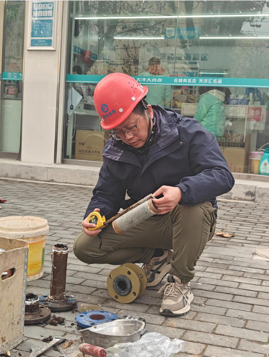 2025年7月,又一嚴(yán)峻考驗降臨,交通大道兩水段突發(fā)區(qū)域性停水。故障就是沖鋒號,劉吉再次主動請纓,率隊緊急出動,戶外溫度直逼40攝氏度。頂著烈日,劉吉帶領(lǐng)隊員們,沿著疑似管線段進行地毯式徒步排查,最終確定故障點位于一處橋梁下方的穿橋主管道。